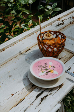 Wystrój restauracji nawiązuje do tzw. domu szwajcarskiego, typowego dla XIX-wiecznej zabudowy Nałęczowa oraz do drewnianych domów charakterystycznych dla okolicy. Wnętrze bogate jest w ręcznie robione stoły i kredensy, gobeliny, wiklinowe fotele, litografie ilustracji Michała Elwiro Andriolliego do „Pana Tadeusza”, także dekoracje i akcesoria o charakterze hipicznym. W ogrodzie liczne cisy, hortensje, róże, bzy i jaśminy.